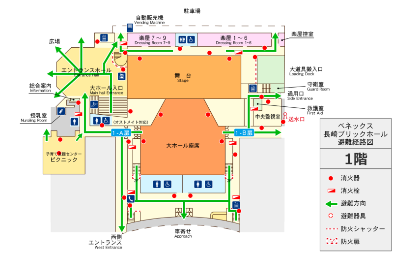 イベント イベントホール 商業施設 地下鉄 宿泊施設 百貨店 立体図 英語併記 英語表記 貸し会議室 避難図 避難経路図